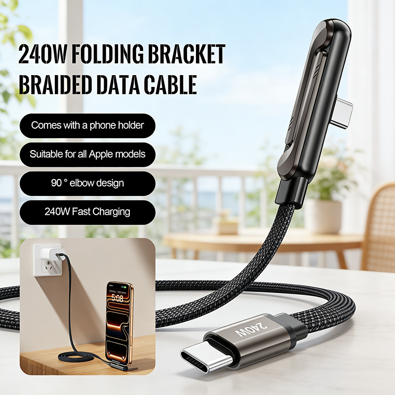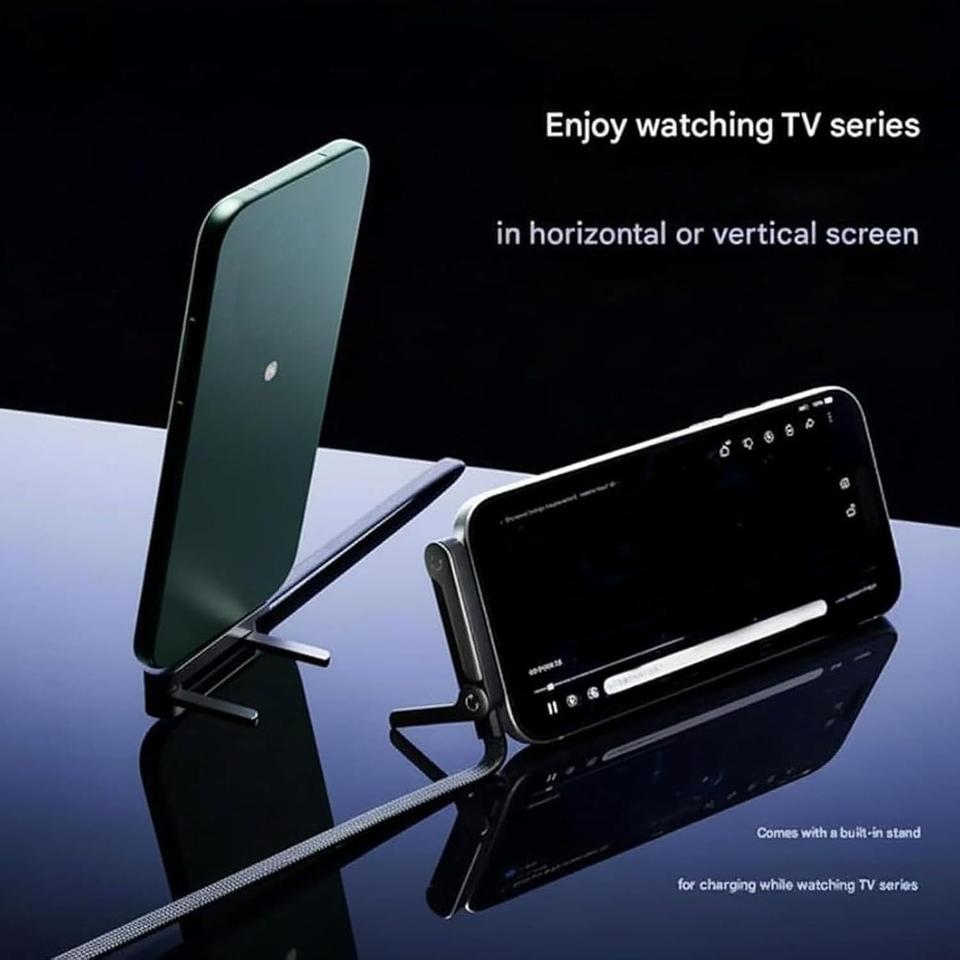 Câble de charge invisible 2-en-1 avec support pliable 24W pour téléphone et transfert de données