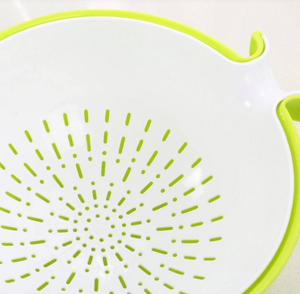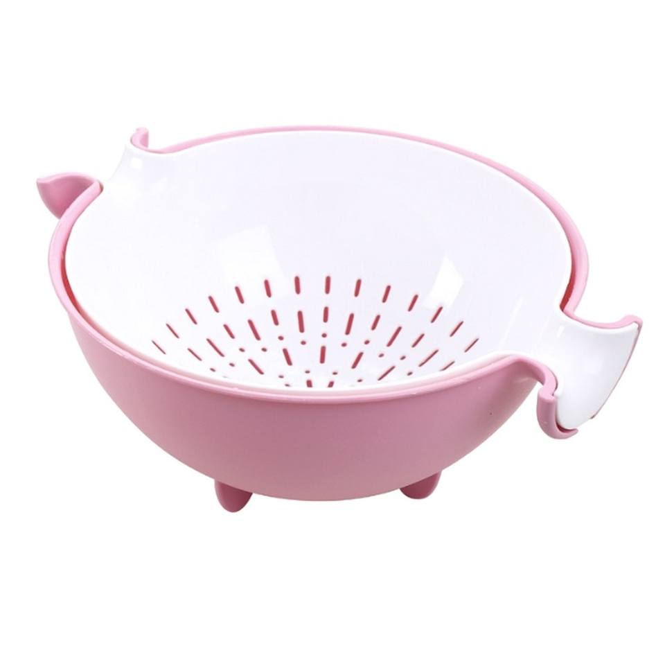 Panier égouttoir rotatif 2-en-1 en plastique pour cuisine, double couche, pour laver légumes et fruits, avec poignée