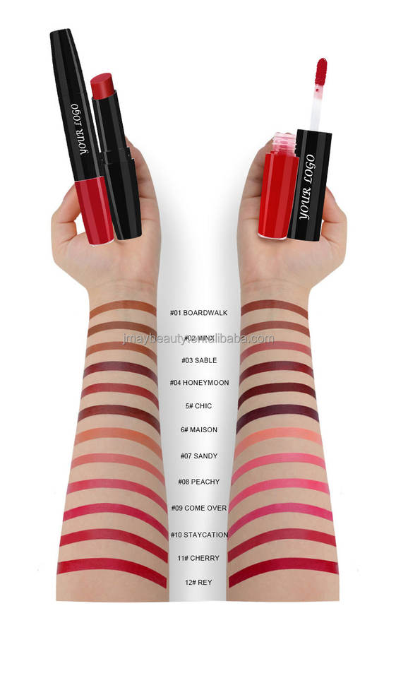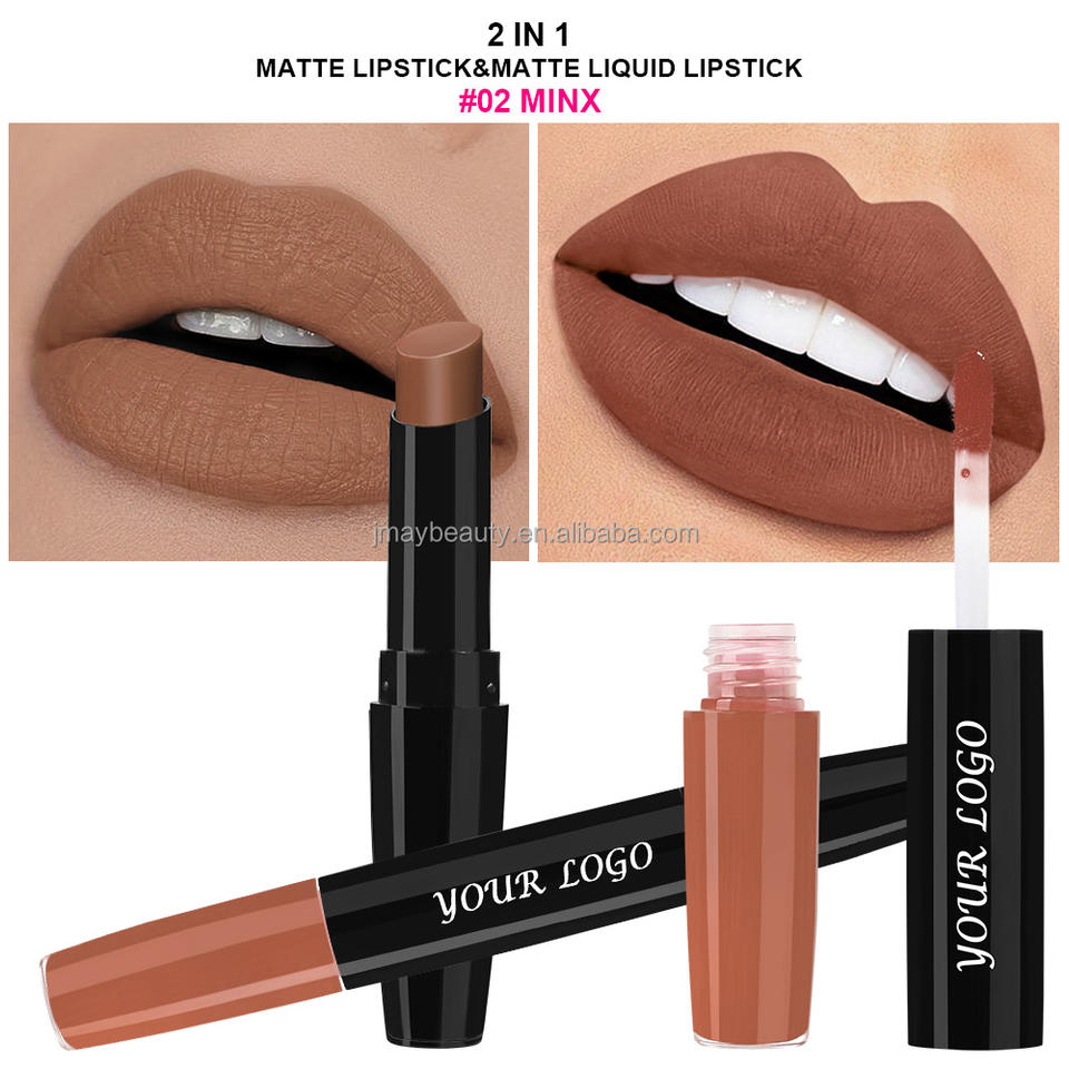 2 en 1 Kit de maquillage pour les lèvres Vente en gros Personnalisé Moist Lipgloss Waterproof Soft Nude Vegan Smooth Creamy Matte Lipstick