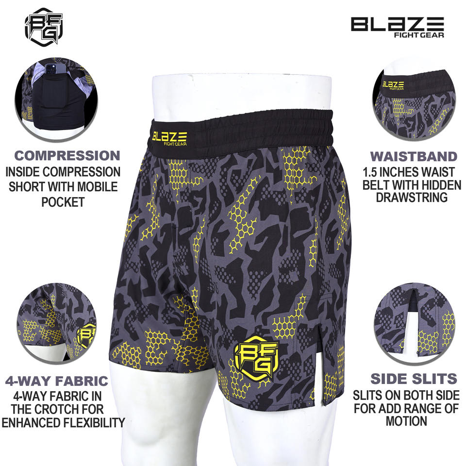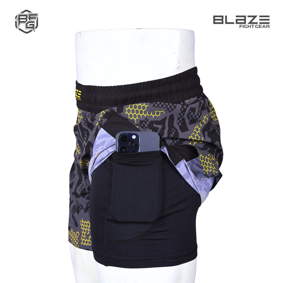 Short MMA 2 en 1 pour Nogi Jiu Jitsu, short de boxe de combat à grappling Ceinture élastique Short de gymnastique extensible dans les quatre sens pour hommes