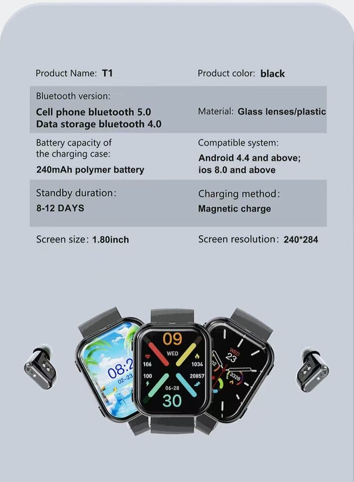 Montre intelligente 2 en 1 avec écouteurs TWS, compatible Android et iPhone, Reloj Inteligente, montre intelligente avec écouteurs pour hommes et femmes
