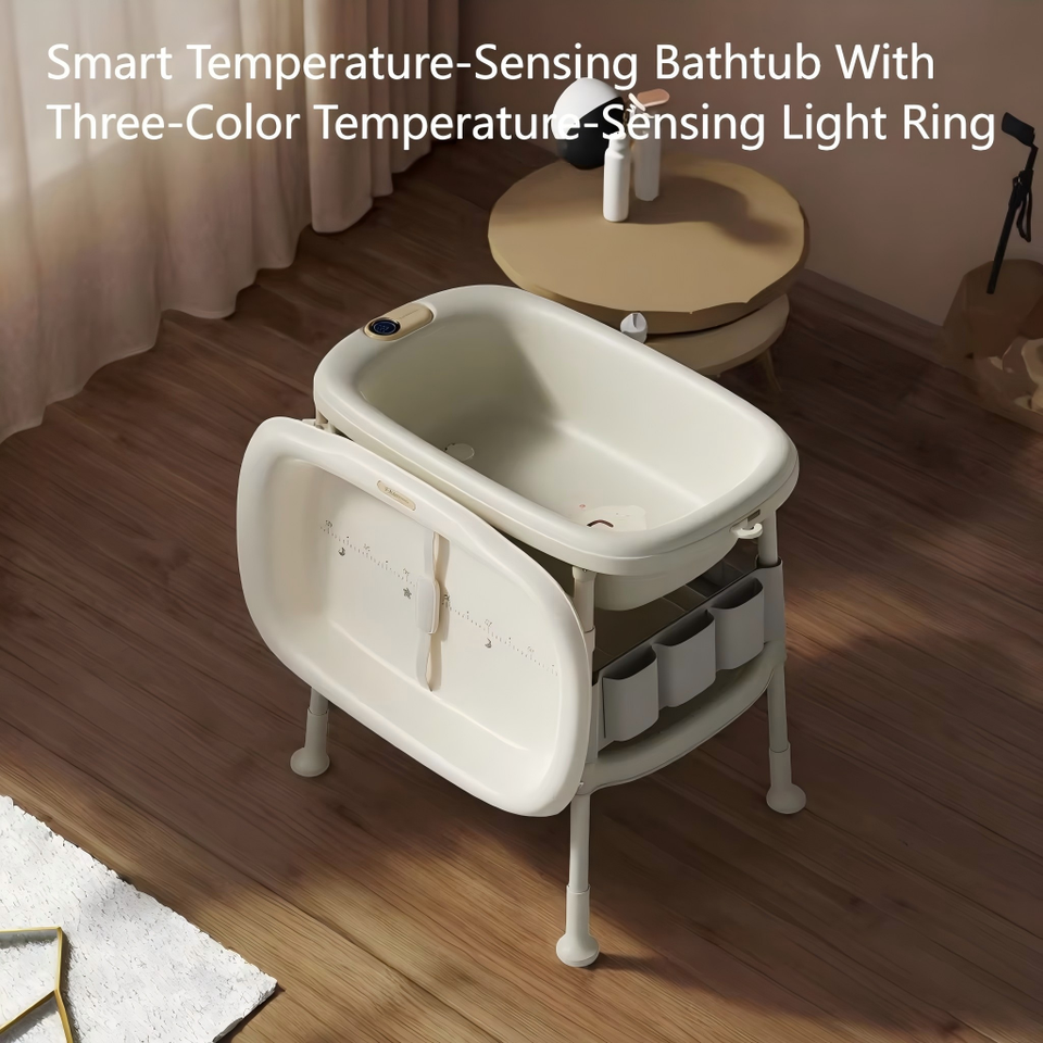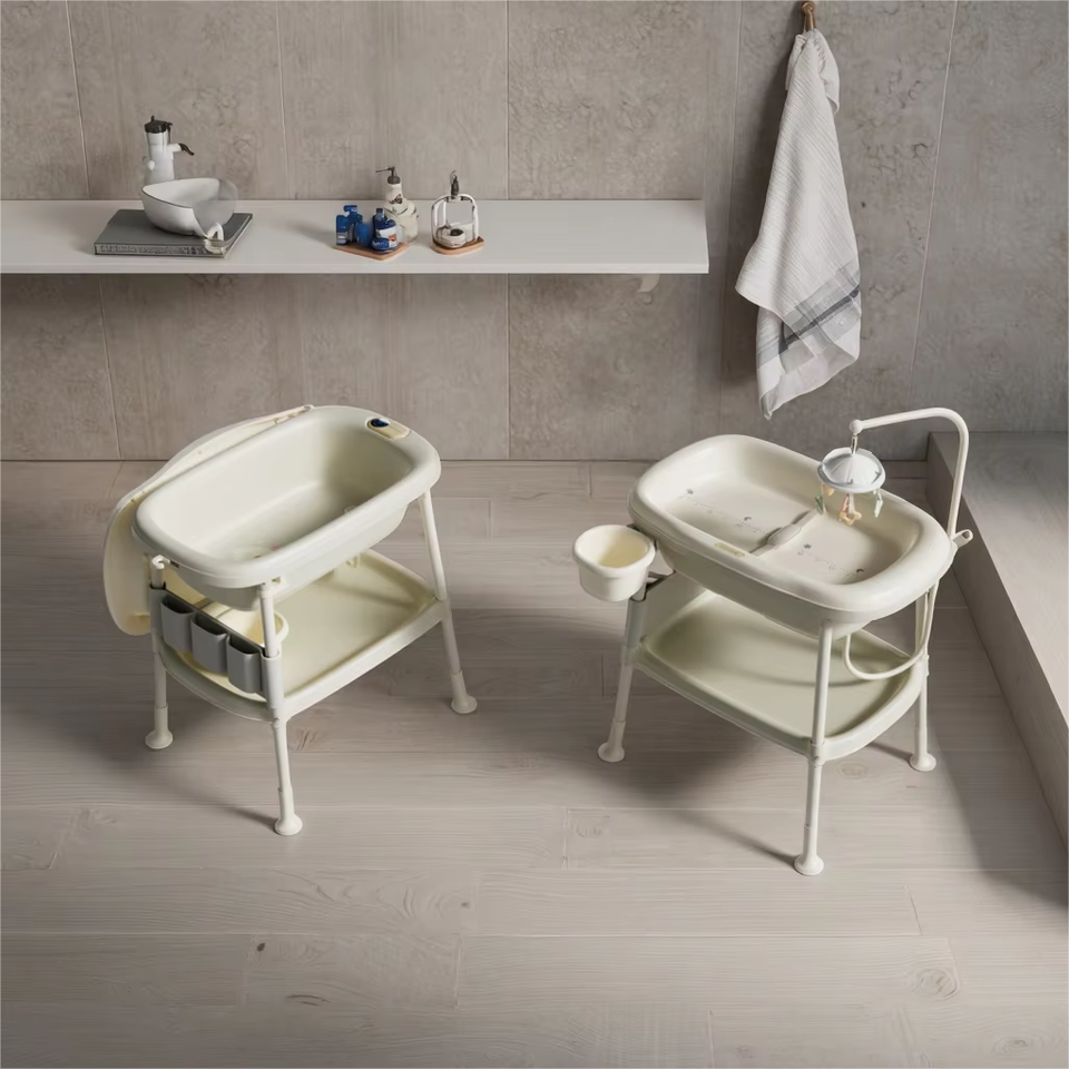 Table à langer et baignoire 2-en-1 pour jeunes parents avec rangement intégré – Produit de bain tout-en-un pour bébé