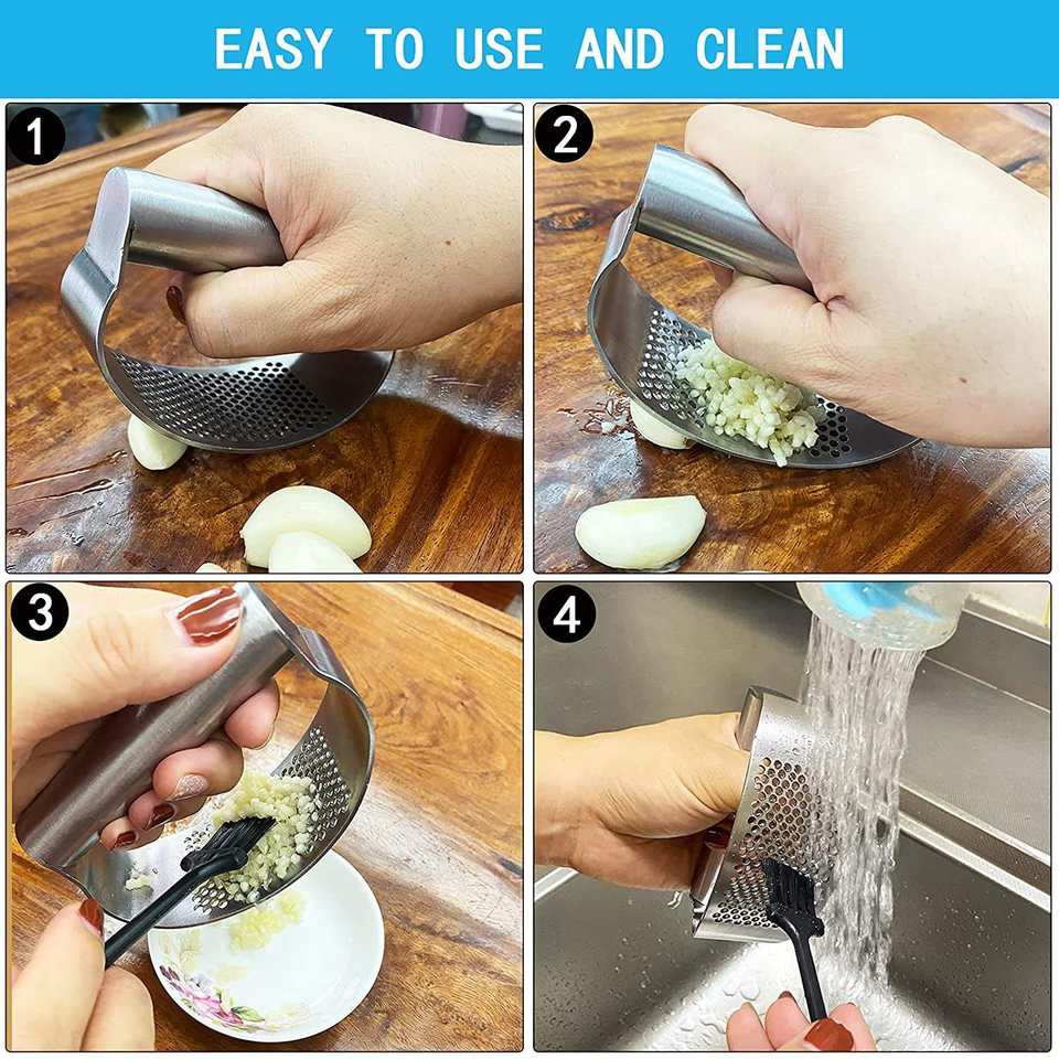 Eplucheur d'ail professionnel 2 en 1 en acier inoxydable Presse-purée hachoir à ail hachoir à gingembre Presse manuelle