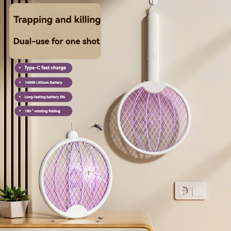 Moustiquaire électrique portable rechargeable 2 en 1 de couleur violette avec charge USB