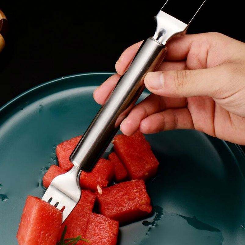 Fourchette à fruits manuelle en acier inoxydable 2-en-1 Coupeur de légumes écologique pour la pastèque Outil en métal indispensable pour l'été