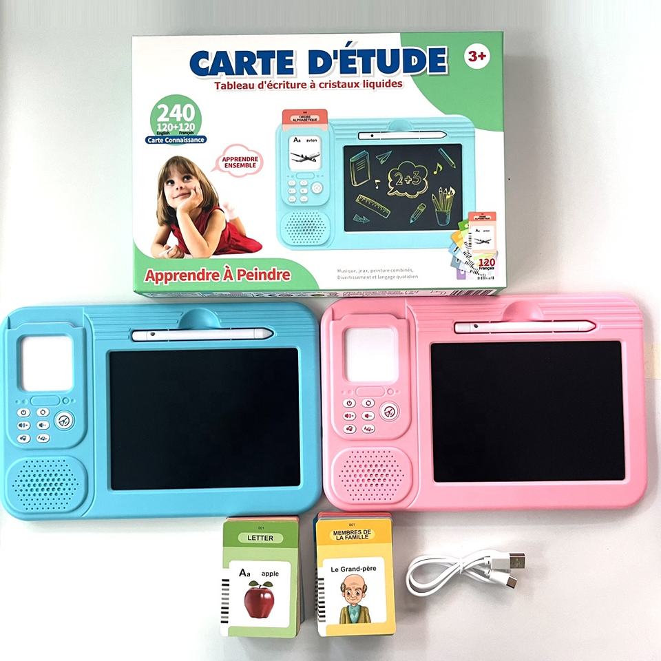 Nom du produit : machine à cartes flash parlantes.:Tablette d'écriture LCD avec cartes flash parlantes, jouet et machine de lecture bilingue