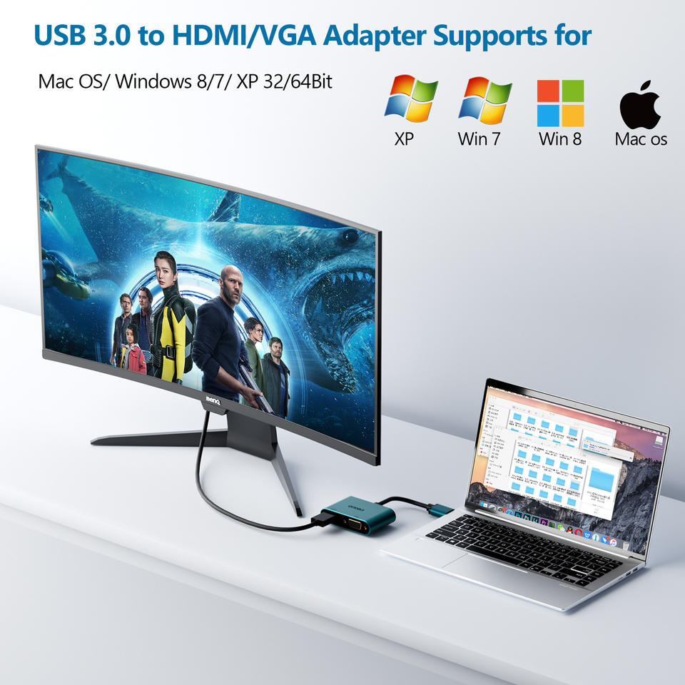 Adaptateur USB3.0 vers HDTV VGA 2-en-1 4K 60Hz VGA 1080P 60Hz, convertisseur USB3.0 vers VGA 2-en-1 1080P sans pilote pour ordinateur