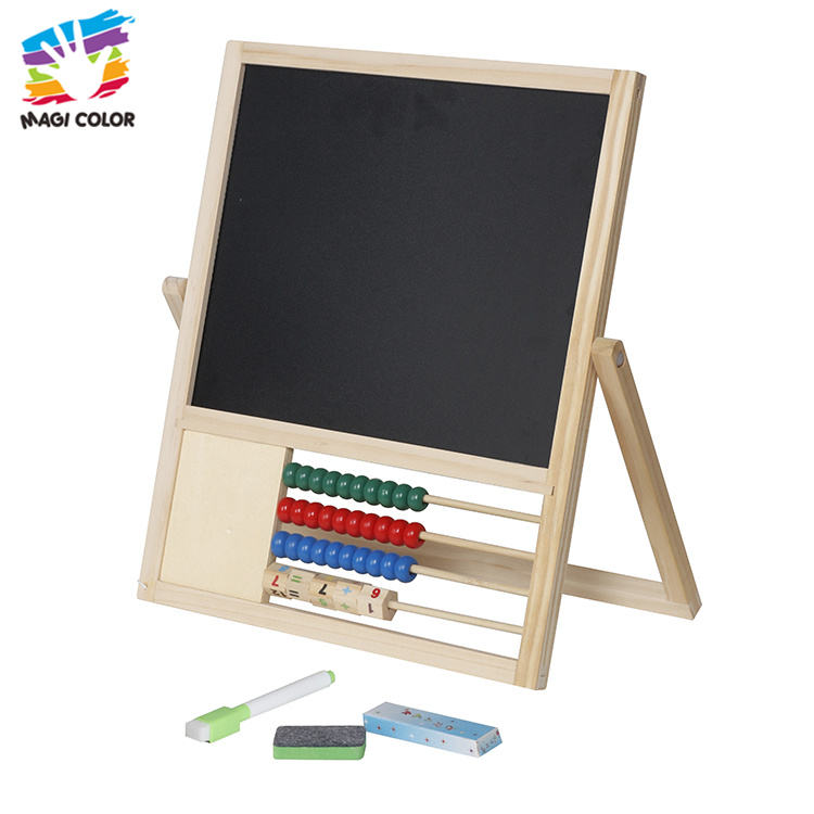 Chevalet en bois double face 2 en 1 pour enfants, alphabet magnétique, abaque, tableau noir, tableau blanc, ensemble de jouets éducatifs d'apprentissage W12B321