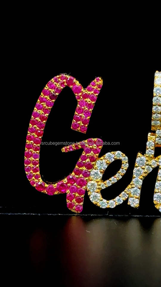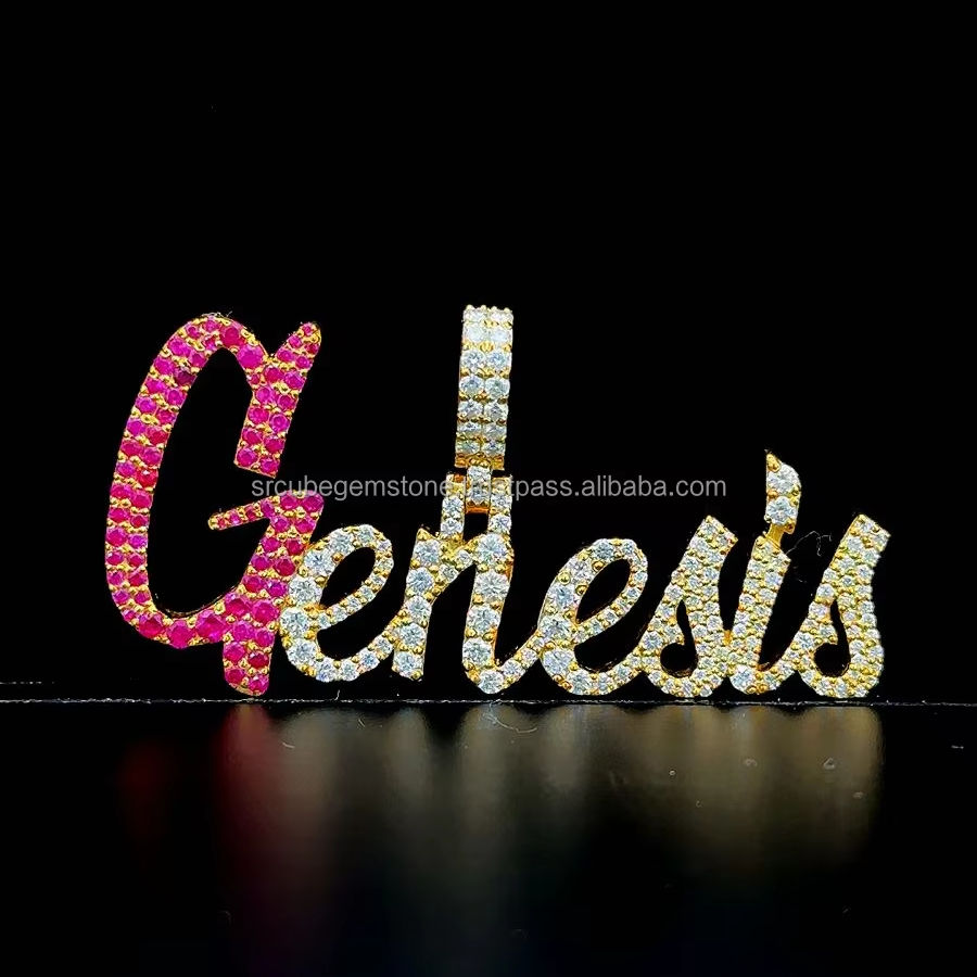 2-Inch Simple Design Moissanite Pendant with Two-Tone Diamond Customized S925 9K 10K 14K 18K Gold Name Pendant Hip-hop Style