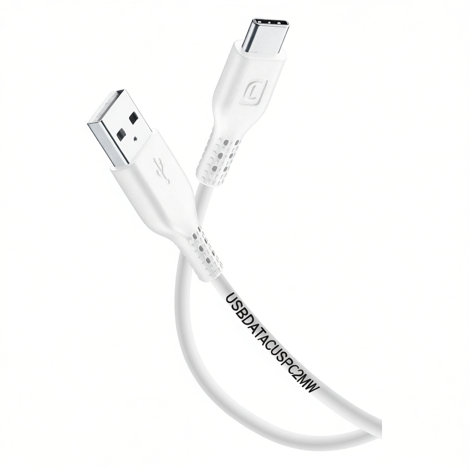 Câble d'alimentation USB-C blanc de 2 m avec gaine TPE, charge rapide 3A, conducteur en cuivre pur pour utilisation informatique