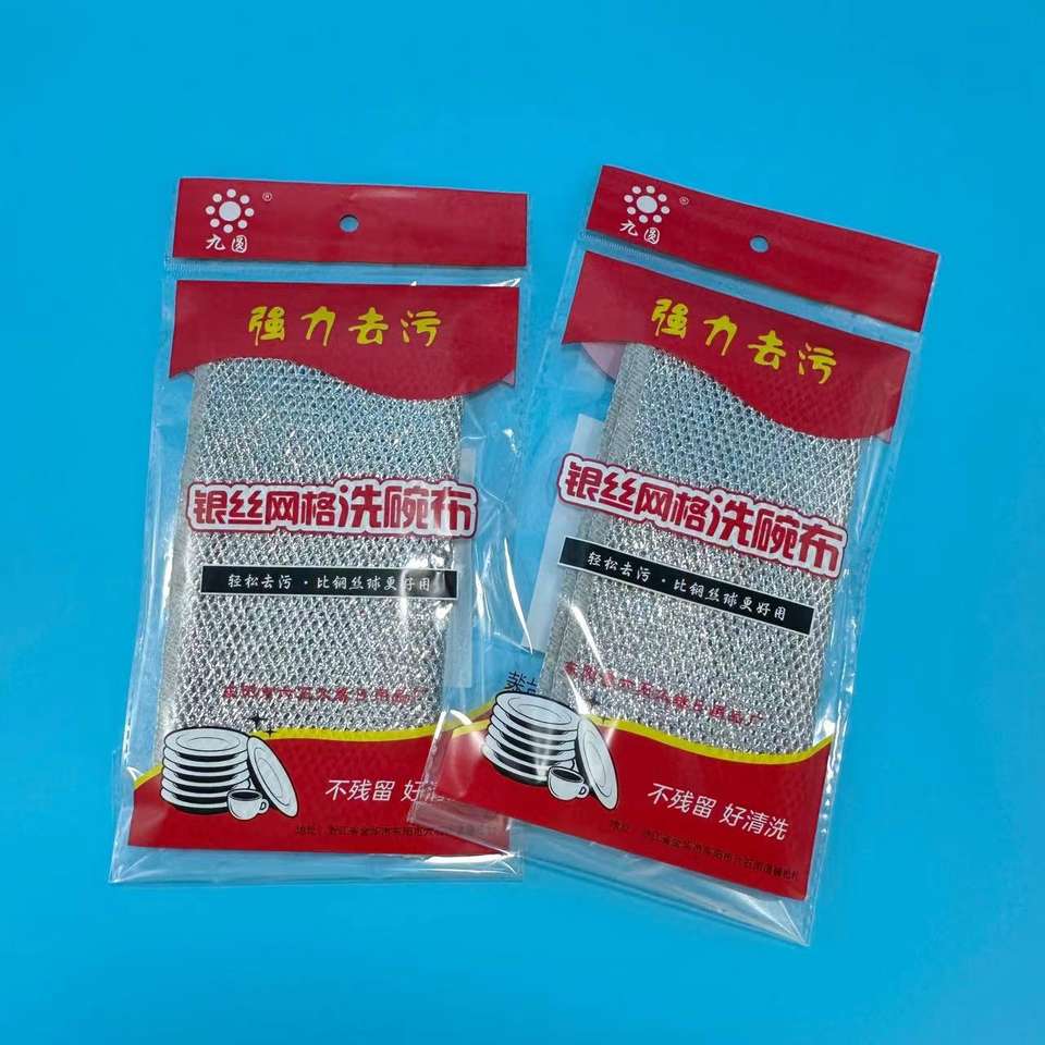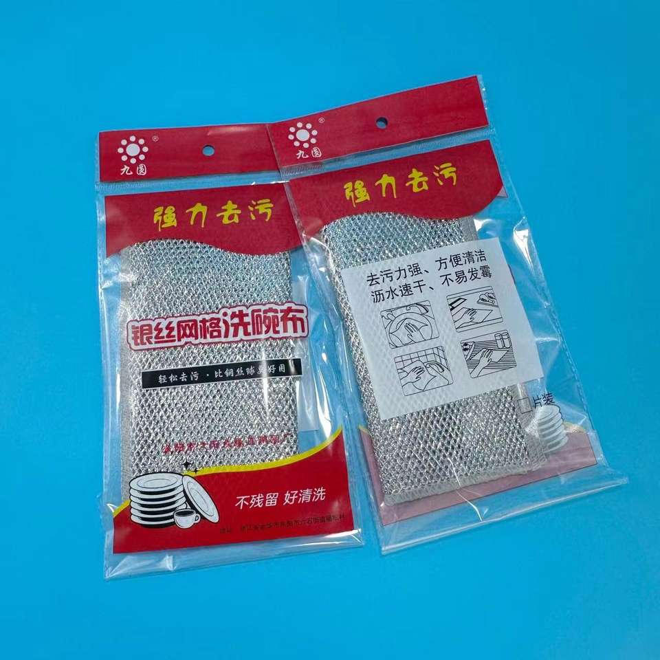 2-pack Silver Mesh Dishcloth Lattice Pattern Rectangle Shape Kitchen Cleaning Cloth 1 Yuan or 2 Yuan Wholesale