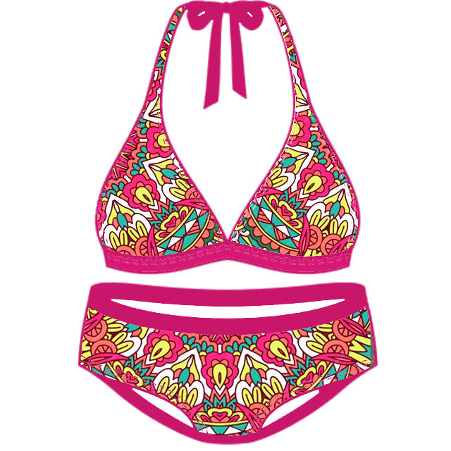 Solid Color 2-Piece Bikniset Swim and Beach Wear XS/XSS Trendy Bra Style with Screen and Digital Printing Sublimation
