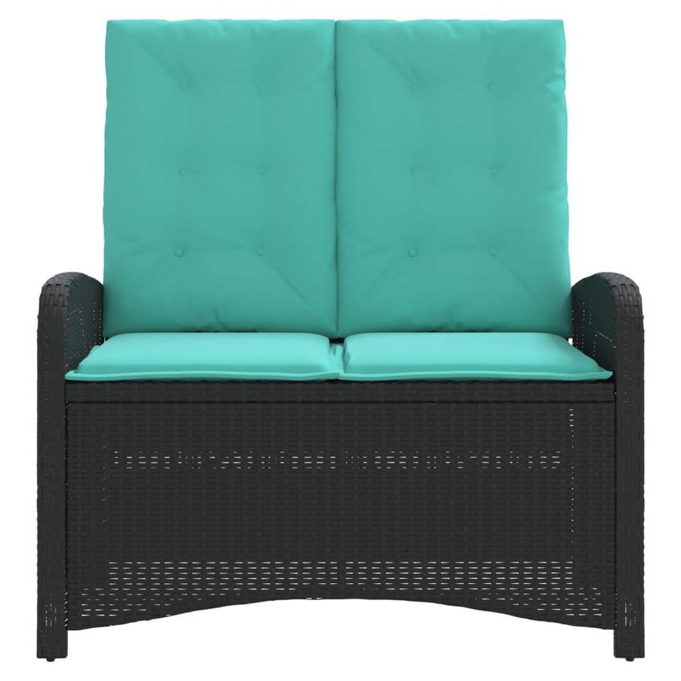 Banc de jardin inclinable en rotin PE noir 2 places, bancs de patio