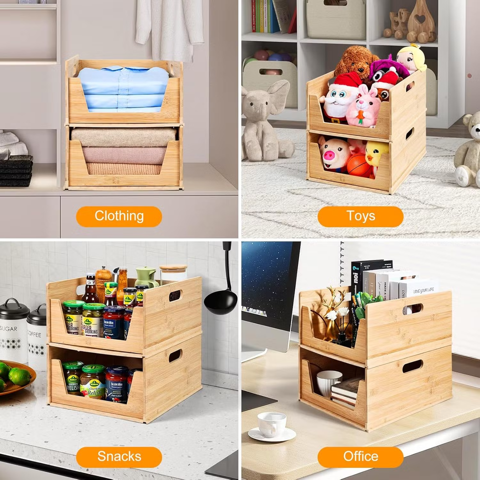Nom:Boîte de rangement polyvalente en bambou à 2 niveaux L12,8 x W15,8 x H14,6 pouces