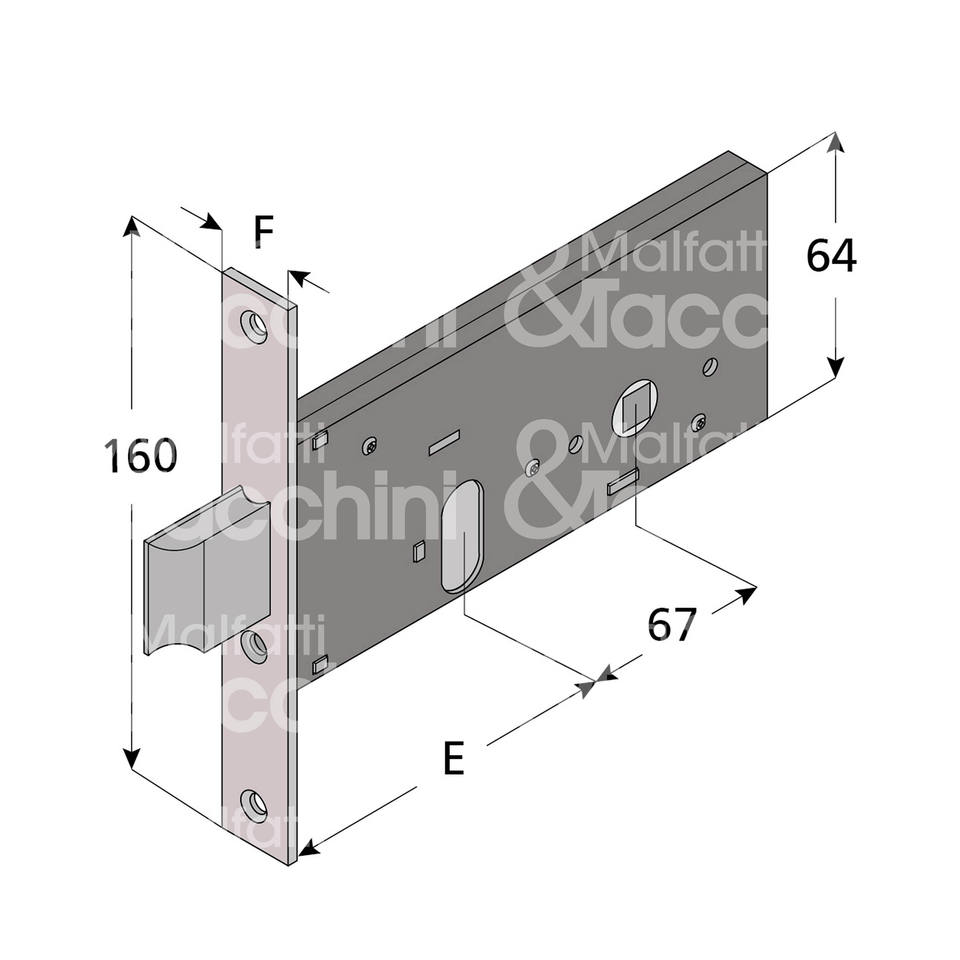Serrure à bande 2 tours avec loquet intégré, cylindre ovale non inclus