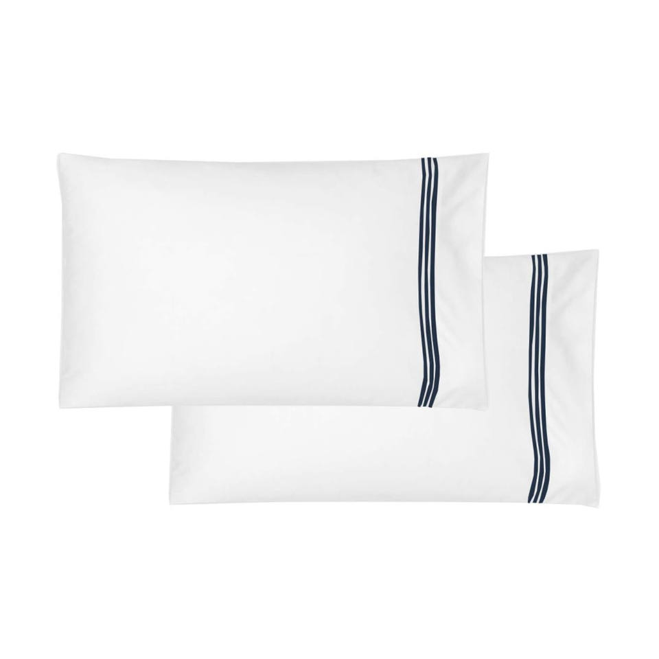 Housse de coussin brodée 20*30 pouces, 100% coton, housse de coussin blanche d'hôtel avec rayure bleu marine
