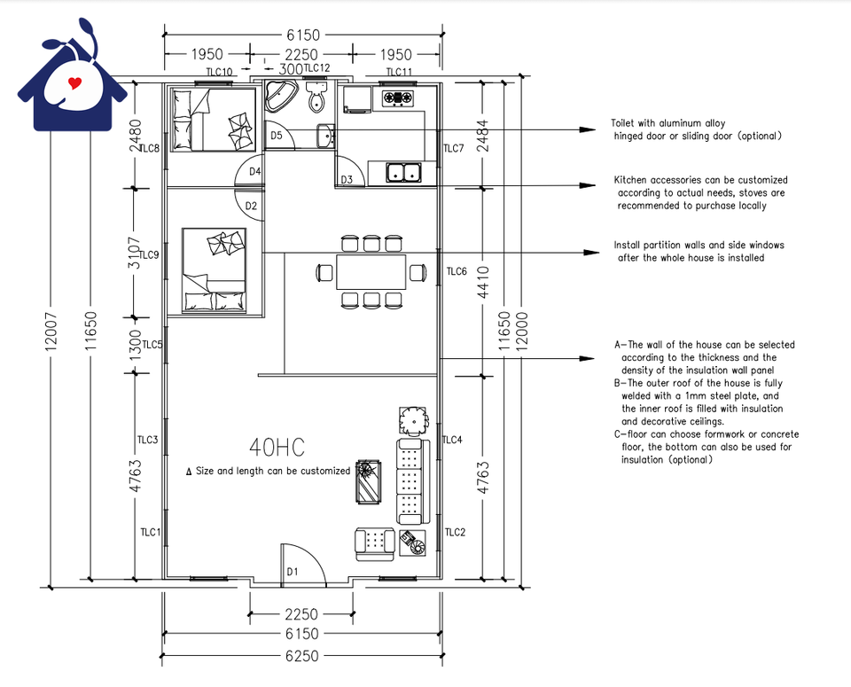 Nom du produit:Maison de conteneur de 40Ft/20ft facile