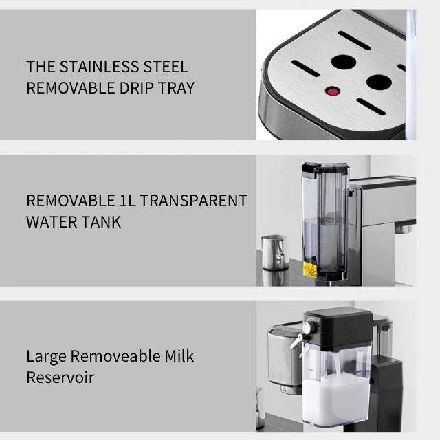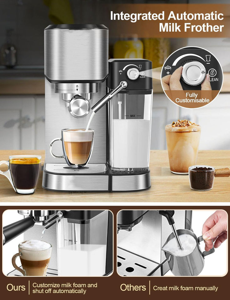 Mousseur à lait automatique à pompe 20 bars Machine à café programmable Grand réservoir à lait amovible Machine à expresso et à cappuccino