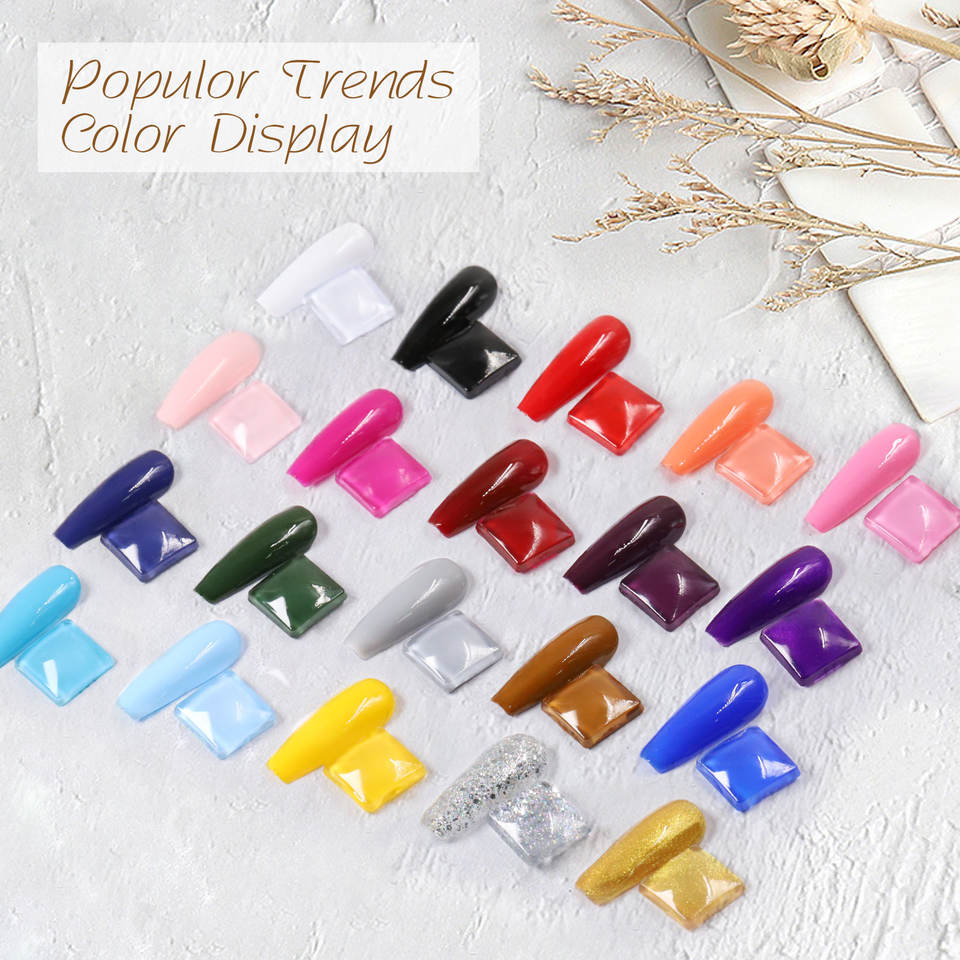 Collection de gels pour ongles 20 couleurs avec couche de base et couche de finition Ensemble de couleurs de vernis à gel LED UV semi-permanent 8ml