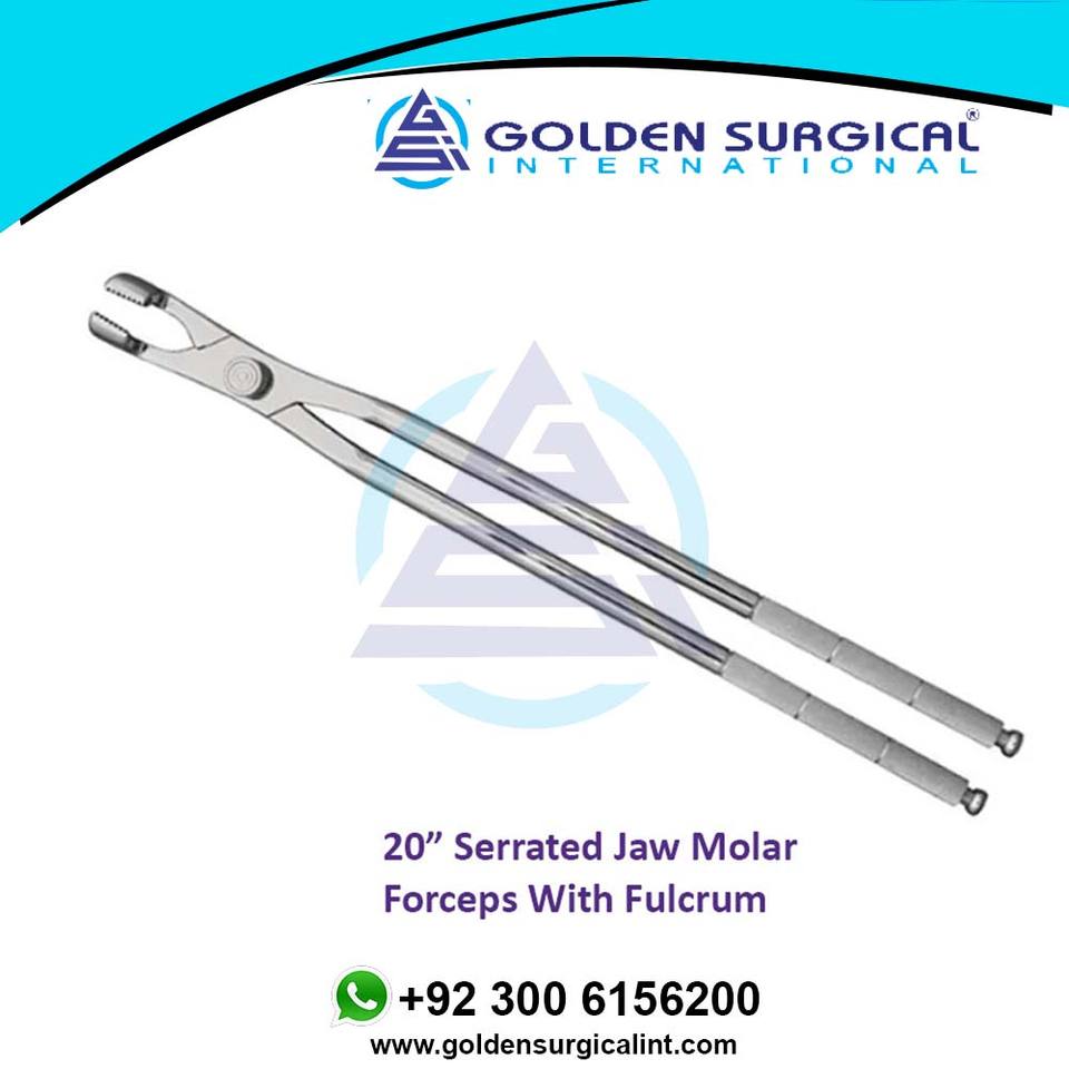 Forceps molaires équins de 20 pouces avec pointe de fulcrum intégrée - Mâchoire dentelée en acier inoxydable, extracteur de dents de cheval