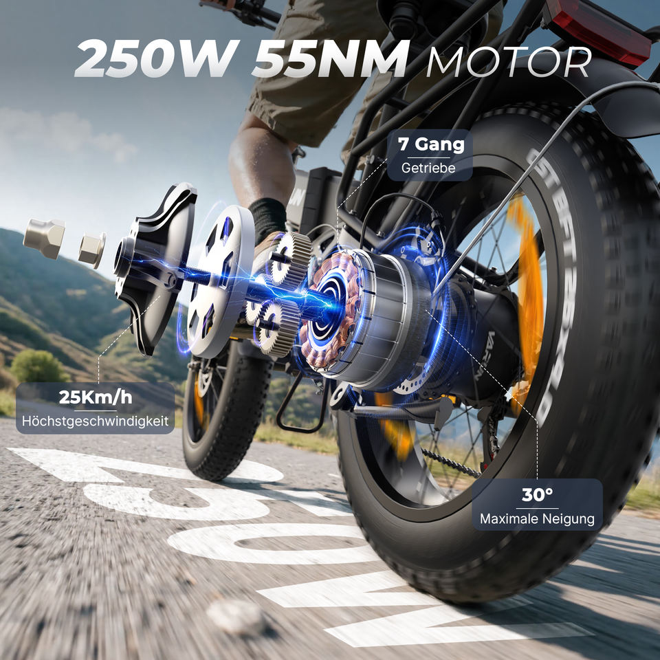 Pliable, LED D'affichage, Shock absorption, Freins à disques, Gros pneus, Pédale aider, Batterie amovible, Rack arrière, Siège réglable, Cadre léger