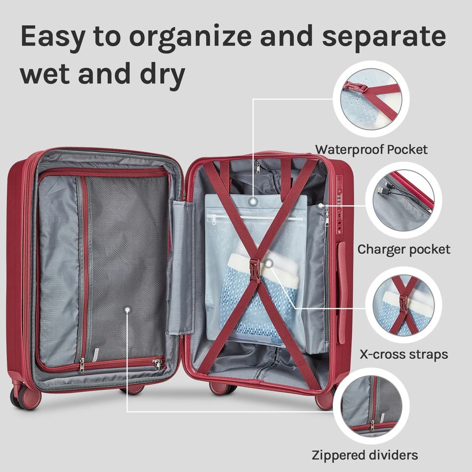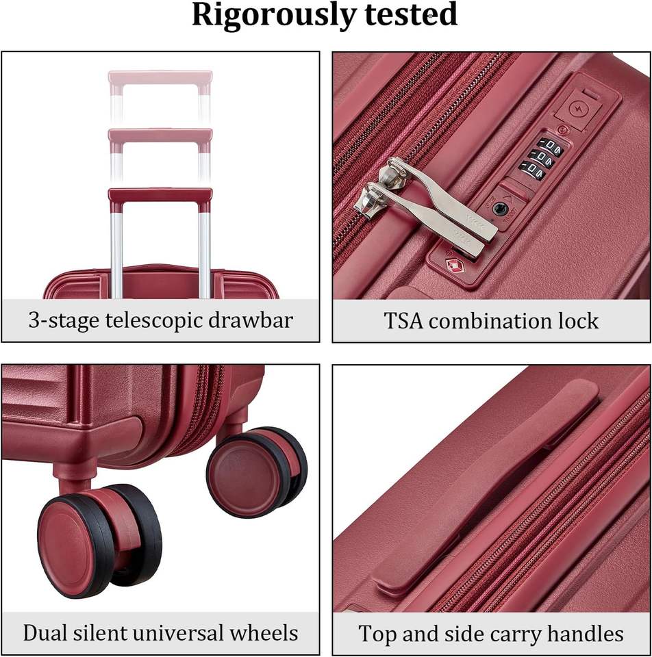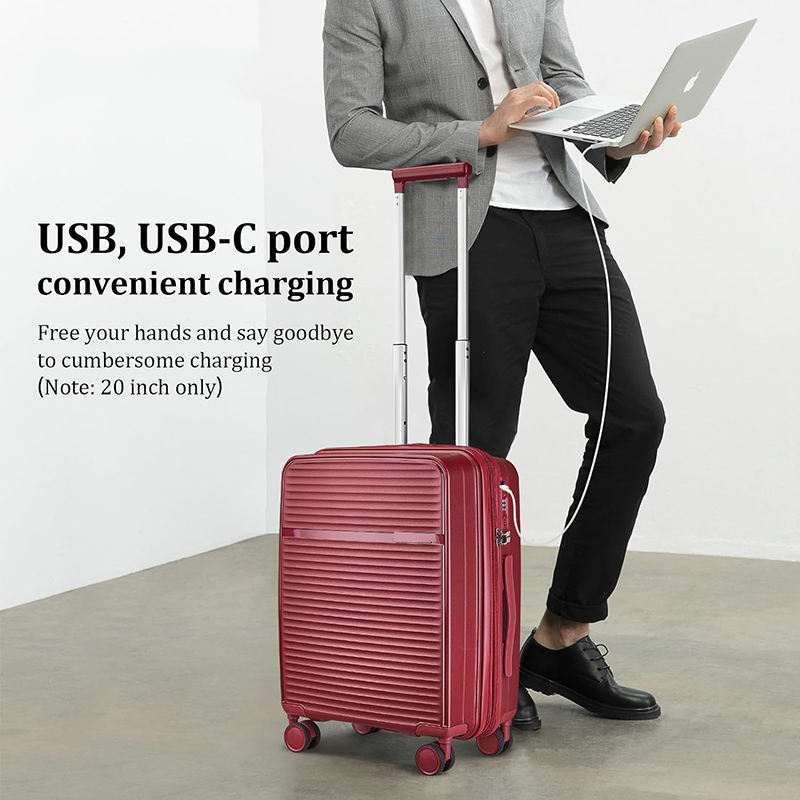 Valise à roulettes portable légère en ABS de 20 pouces avec roulettes pivotantes, serrure approuvée par la TSA, port USB, ensemble de bagages de haute qualité