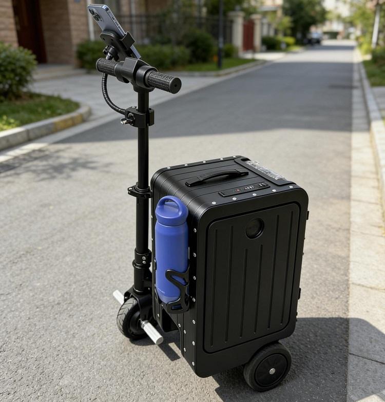 Valise trolley rigide moderne de 20 pouces avec cadre en aluminium, contrôle par application, support pour téléphone et porte-gobelet