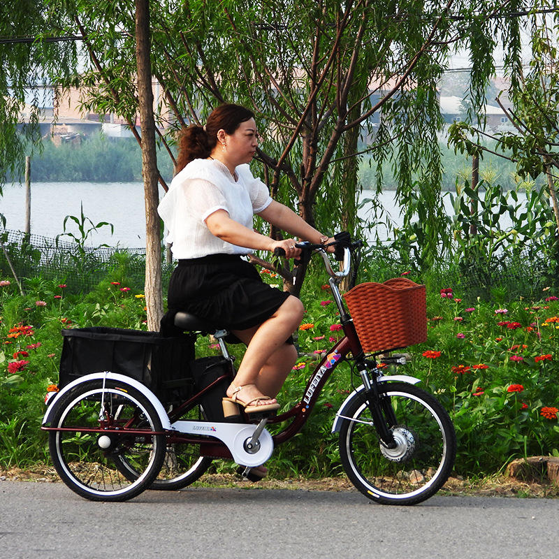 Tricycle électrique 20 pouces pour adultes et seniors, tricycle à assistance au pédalage avec moteur sans balais, design de transport et de chargement domestique