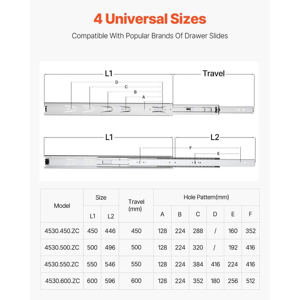 Glissières de tiroir à roulement à billes à extension complète de 20 pouces, 10 paires, capacité de charge de 100 lb, rails de commode robustes à montage latéral