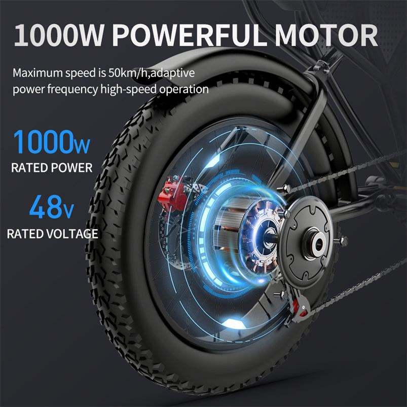 Cadre en acier à haute teneur en carbone de 20 pouces Batterie au lithium 48V 20Ah Moteur sans balais 1000W Moyeu arrière électronique intelligent Vélo de montagne électrique