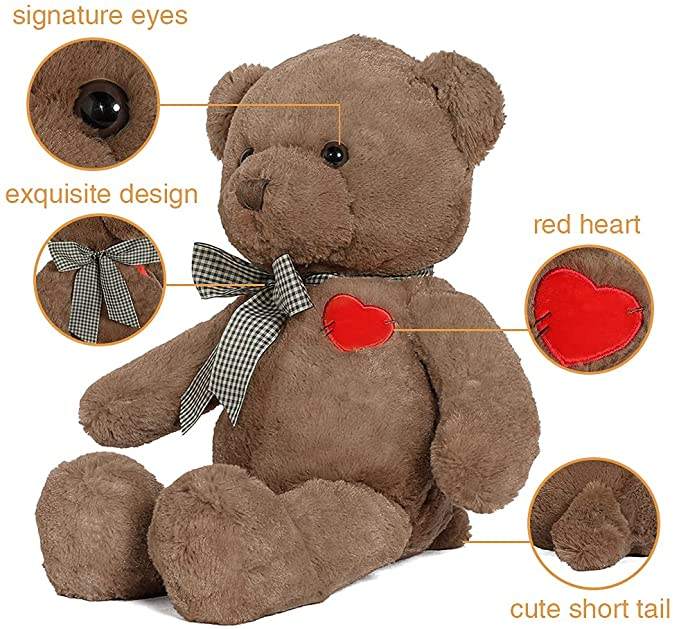 Nom du produit:20 pouces étreignant grande chocolat ours en peluche avec arc en peluche jouet