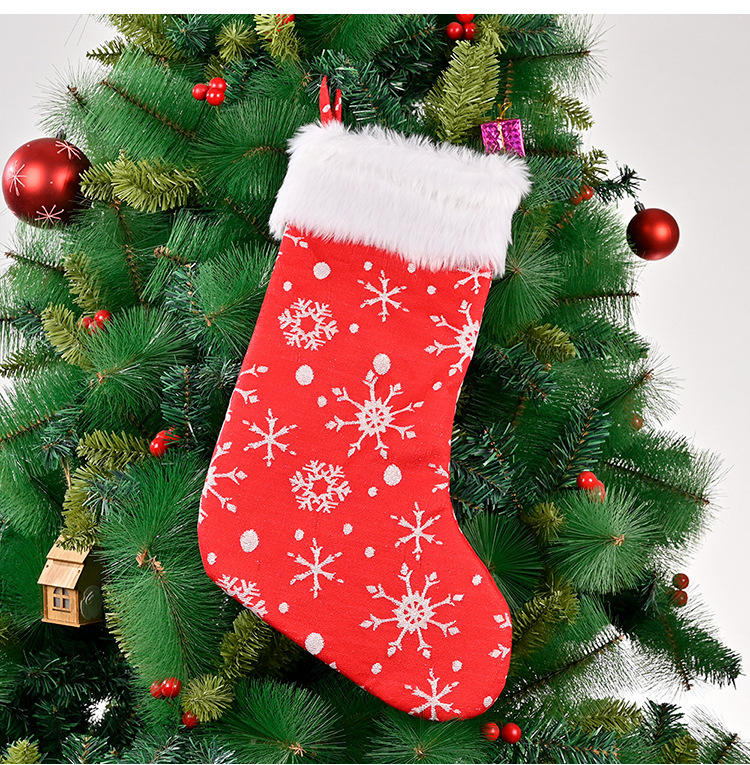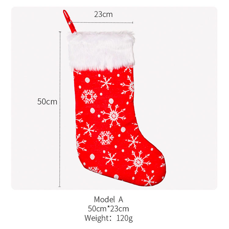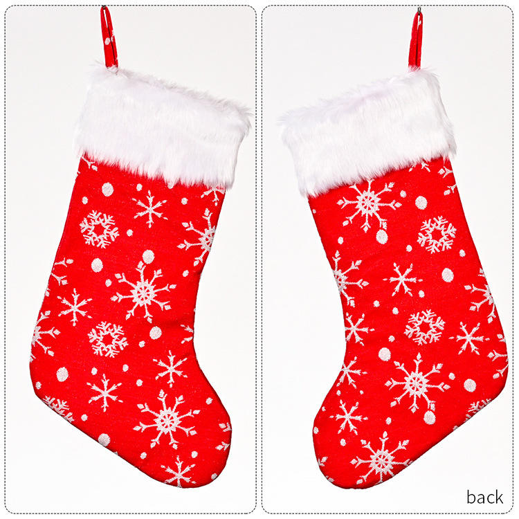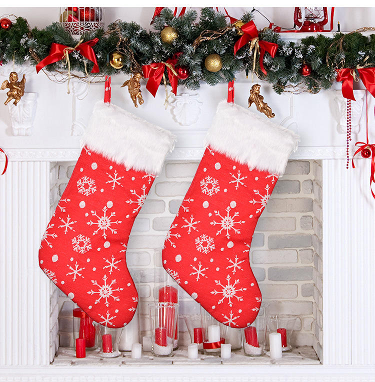 Bas géant de 20 pouces avec manchette en fausse fourrure Chaussette de Noël brodée de flocons de neige en flanelle Grand bas de Noël