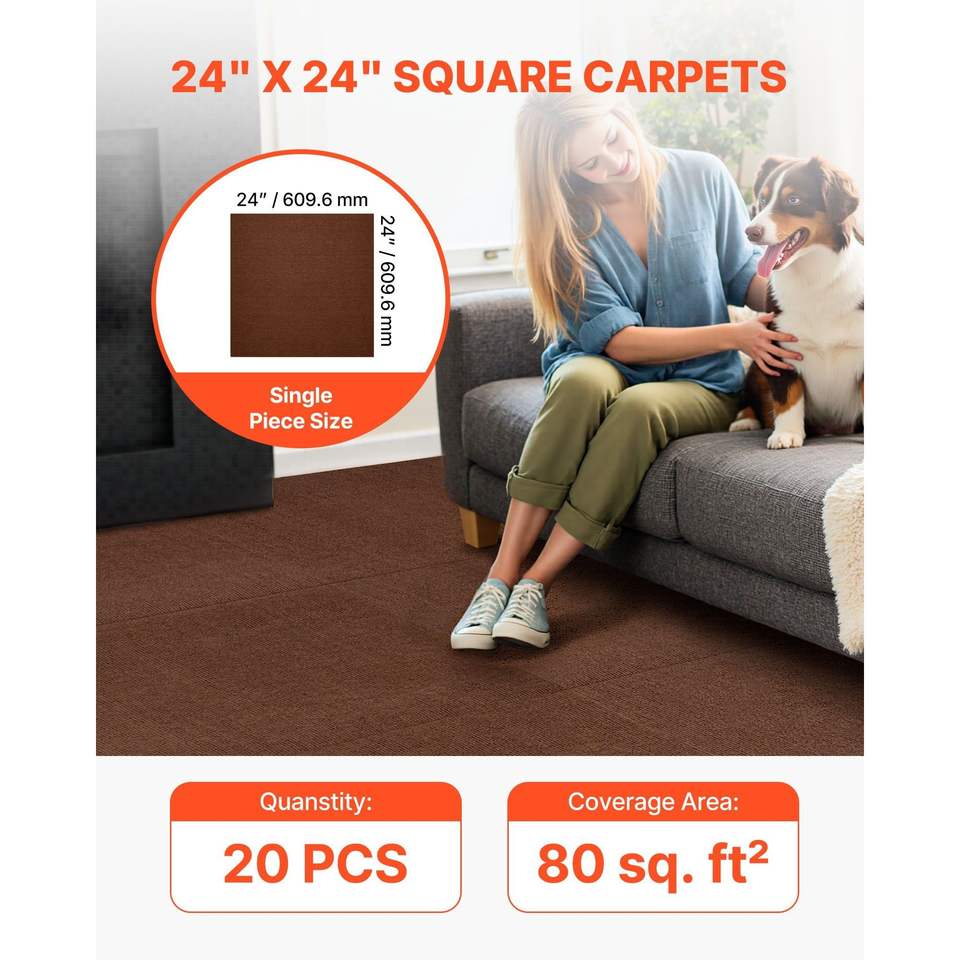 Lot de 20 dalles de moquette autocollantes 24x24 pouces, tapis de sol commercial auto-adhésif, moquette rembourrée douce sans couture, tapis et ensembles de tapis de couloir