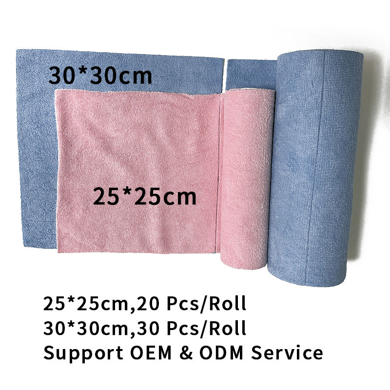 Lot de 20 rouleaux de serviettes réutilisables en microfibre 25 cm × 25 cm, chiffons de nettoyage multi-usages pour cuisine, voiture, vitres, maison, bureau