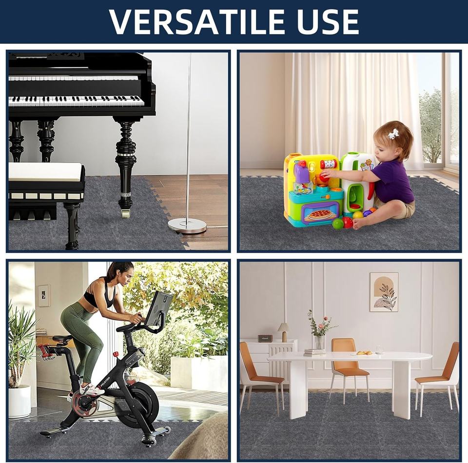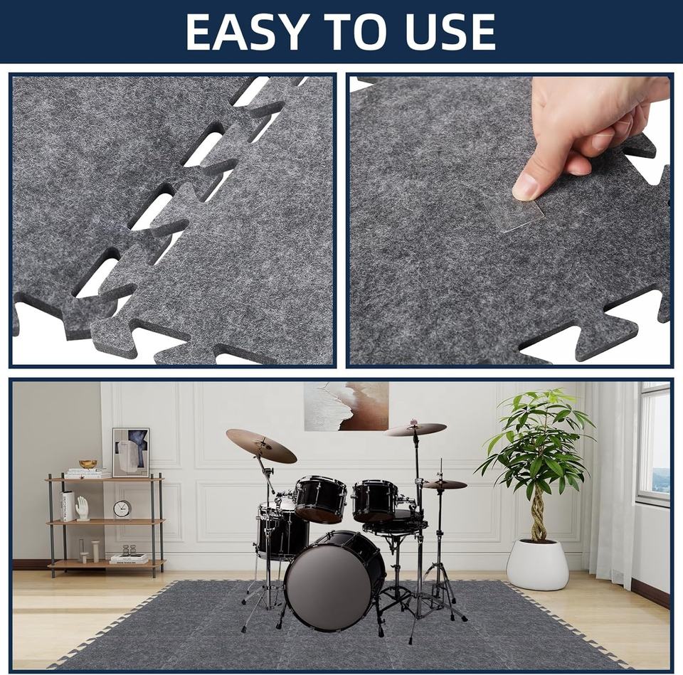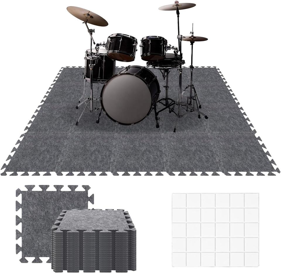 20 Pièces Tapis Acoustique Absorbant le Son en Feutre PET, Tapis de Piano, Tapis de Batterie, Tapis de Sol Antidérapant Anti-Vibration à Emboîtement