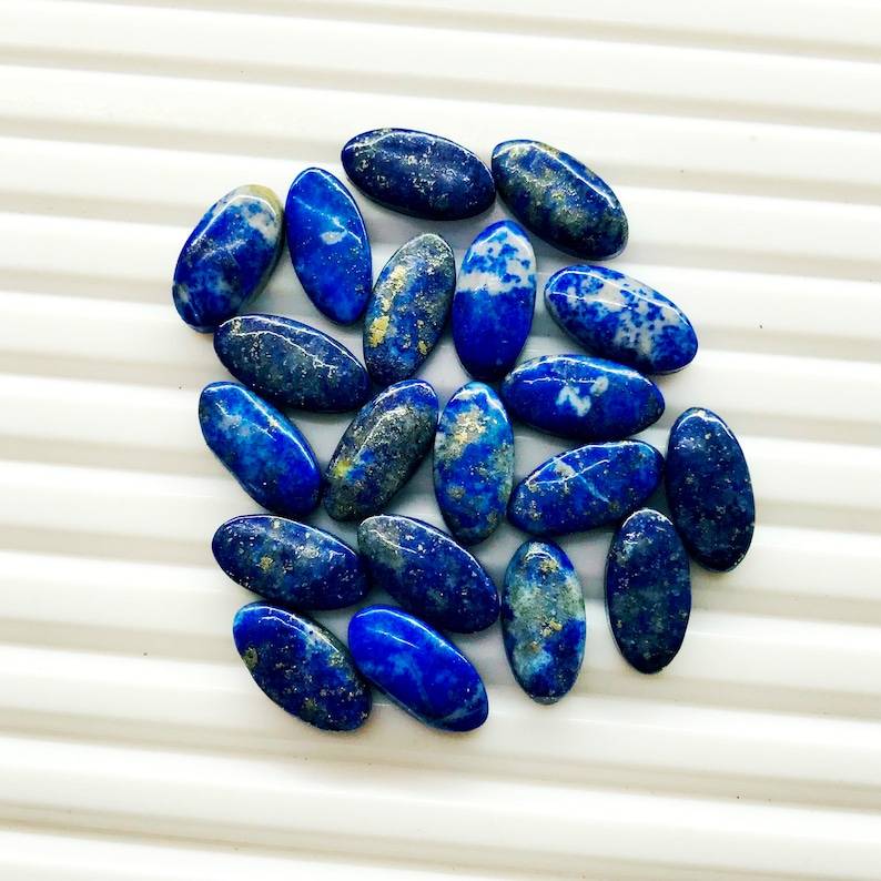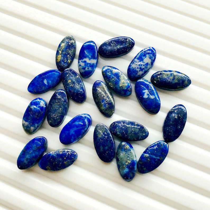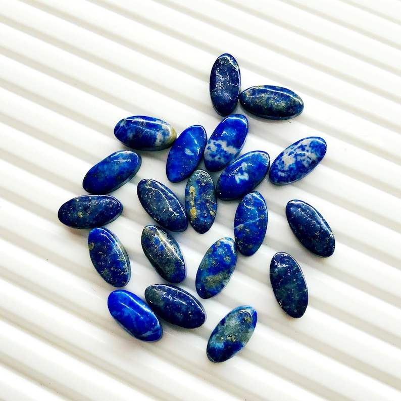 20 Polished Lapis Lazuli Gemstones Oval Cabochons 4x7x14mm Loose Stones for Jewelry Making