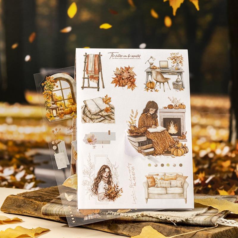20 autocollants imprimés par paquet, série Invitation Automne, grands autocollants découpés, auto-adhésifs, vernis brillant, PET+Papier