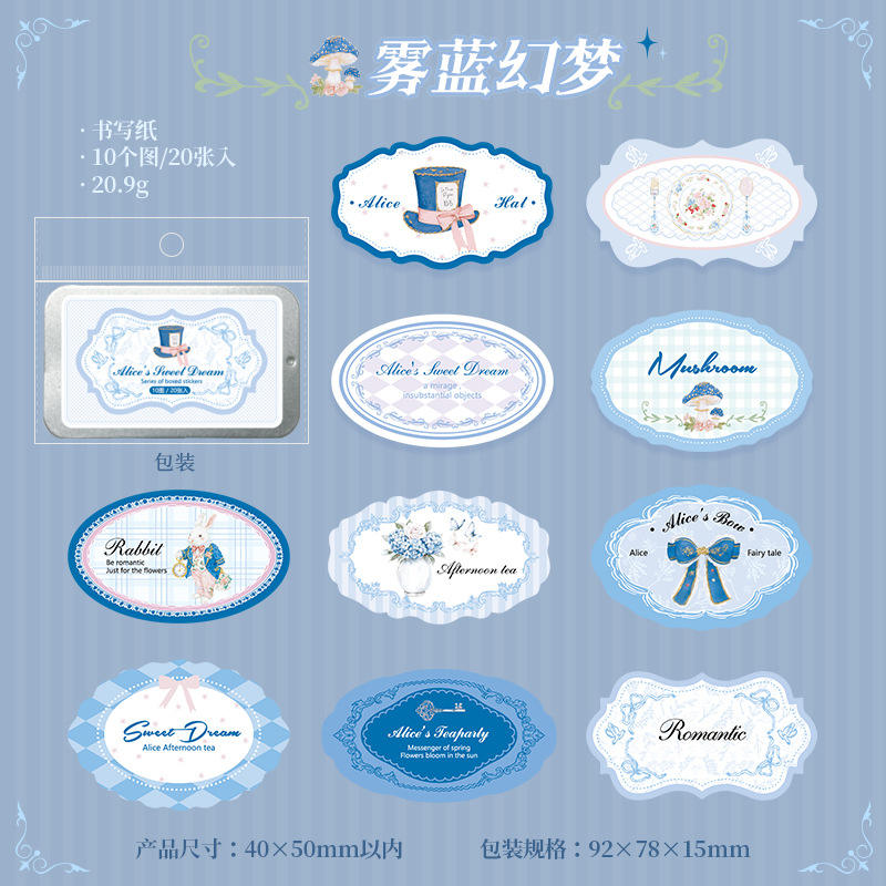 20 autocollants par boîte, série Alice Sweet Dreams, matériaux décoratifs sur le thème des contes de fées pour carnets d'écriture manuscrite