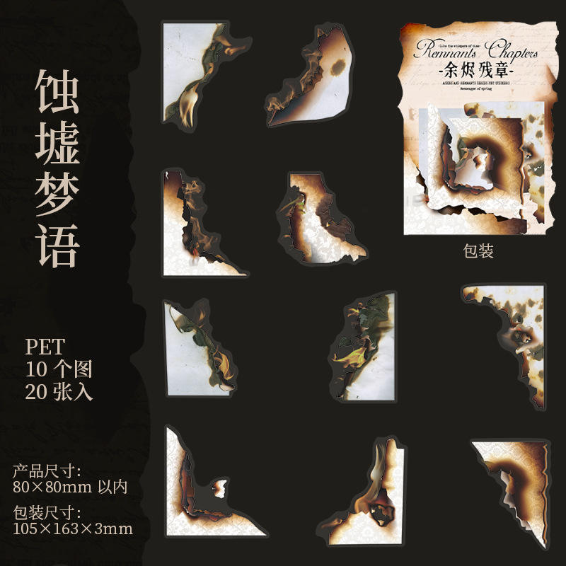 20 autocollants par paquet Restes de la braise Restes de la série Chapter Décorations de coin en matériau ardent