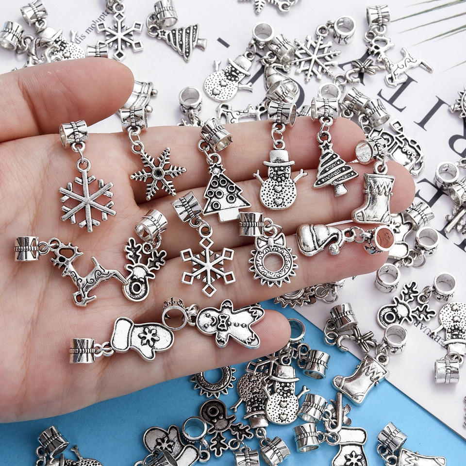 20 Styles Mixtes Argent Antique Noël Série Imitation Père Noël Flocon de Neige Bonhomme de Neige Pendentif DIY Bracelet Bijoux Accessoires