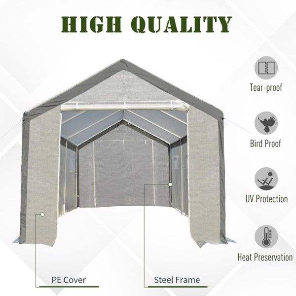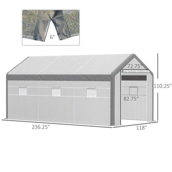 Serre de jardin walk-in 20 'x 10' x 9 'avec 8 fenêtres refermables et porte enroulable