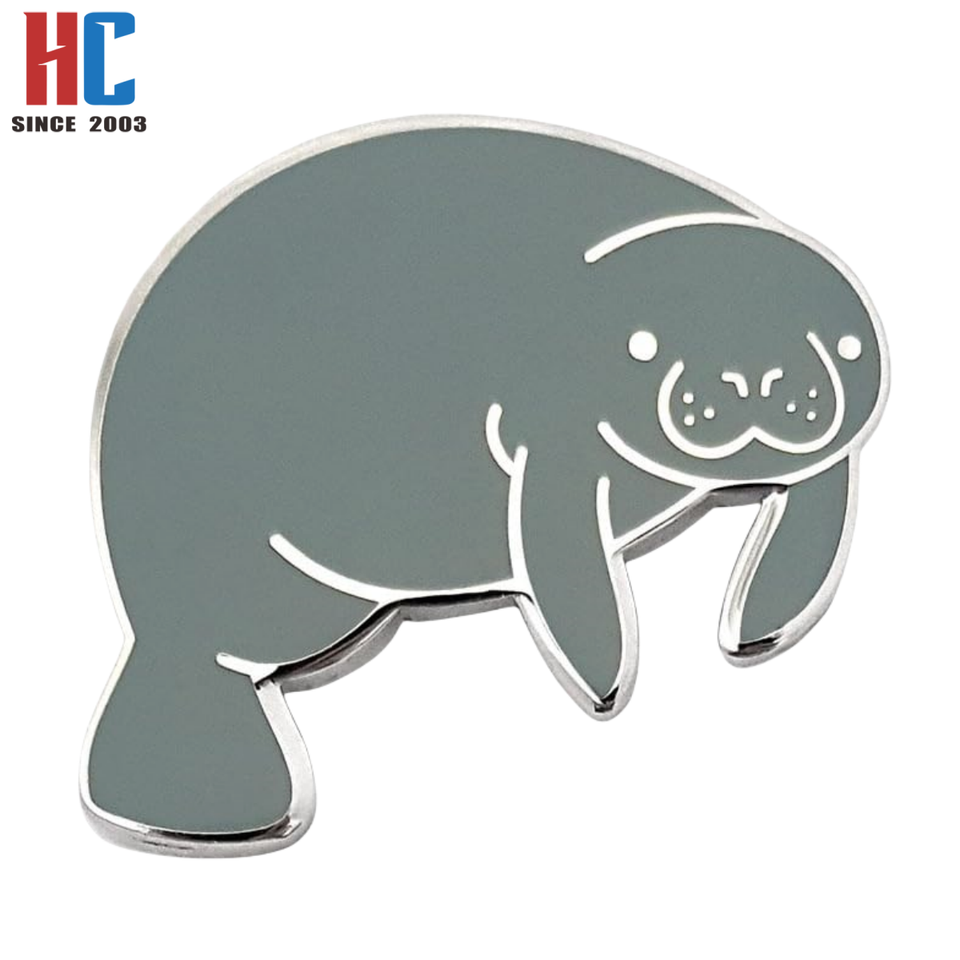 Épinglette en émail moderne en métal personnalisée, motif lamantin, vie marine, créatures océaniques et d'aquarium, cadeau artisanal, de notre usine avec 20 ans d'expérience