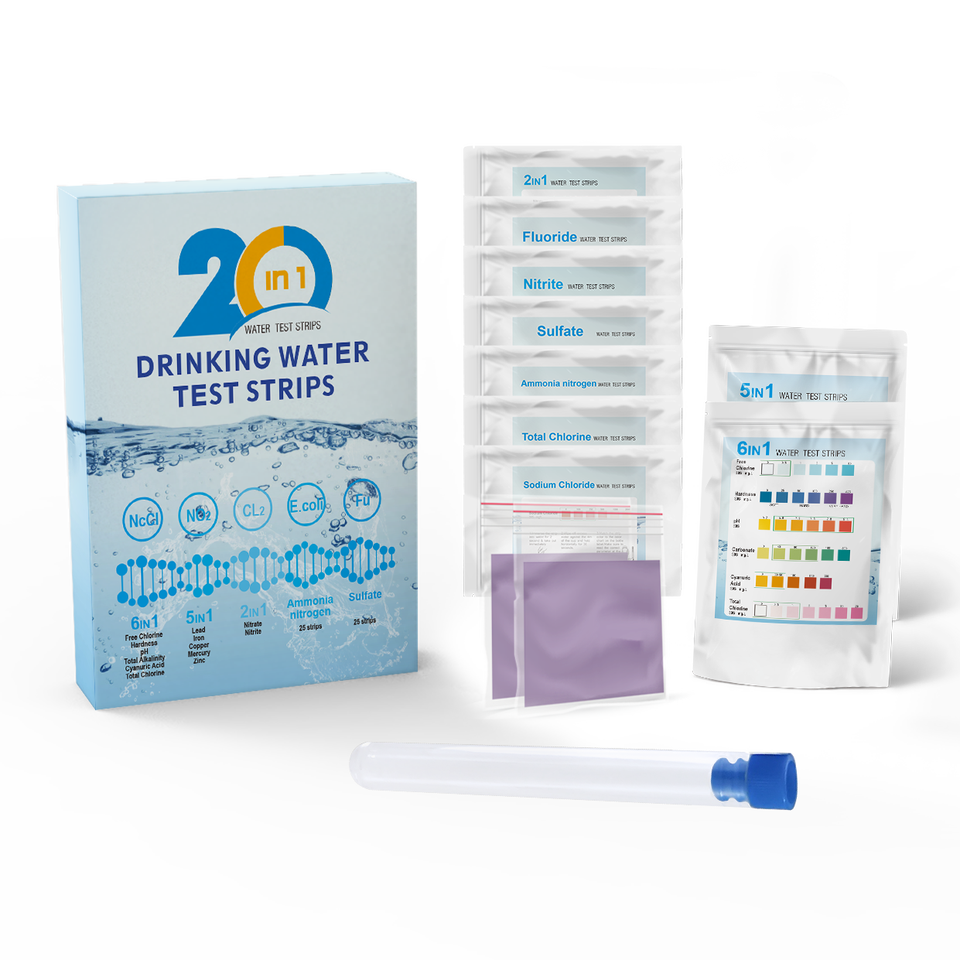 20-in-1 Multi-Parameter Water for Kit for Drinking Water Aquariums Swimming Pools Bacteria Copper More-PET Material 2-Year