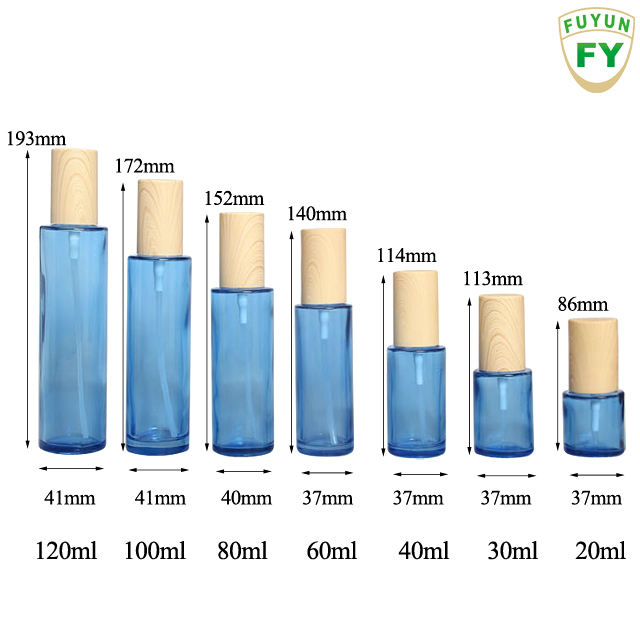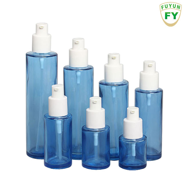20 ml/30 ml/40 ml/60 ml/100 ml/120 ml emballage cosmétique lisse bleu lotion pompe pulvérisateur vide bouteille en verre