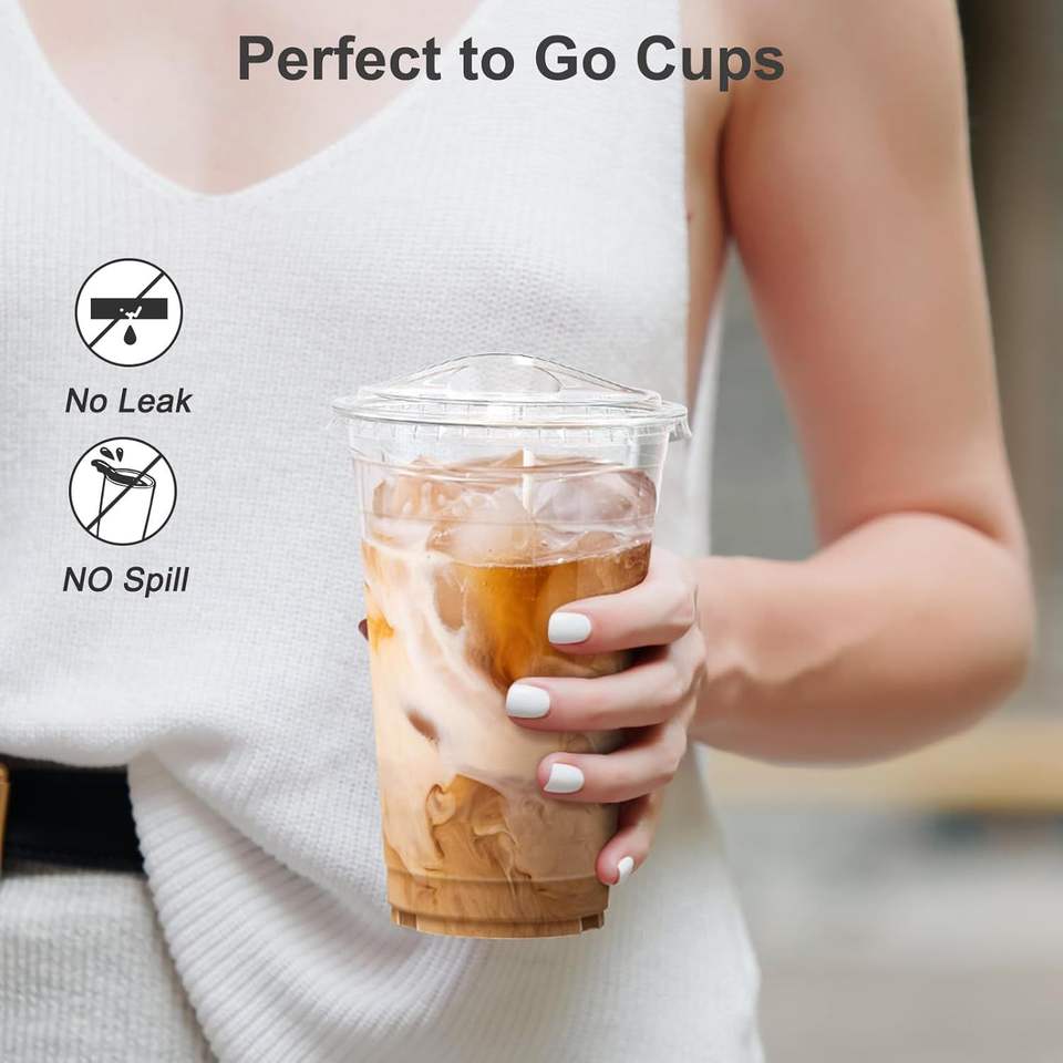 Gobelets jetables en plastique transparent de 20 oz avec couvercles, robustes et adaptés aux aliments, pour café glacé et smoothies, lot de 00