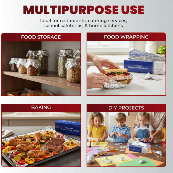 200 feuilles de papier aluminium prédécoupées, écologiques, pour usage quotidien, robustes, pour cuisine et maison