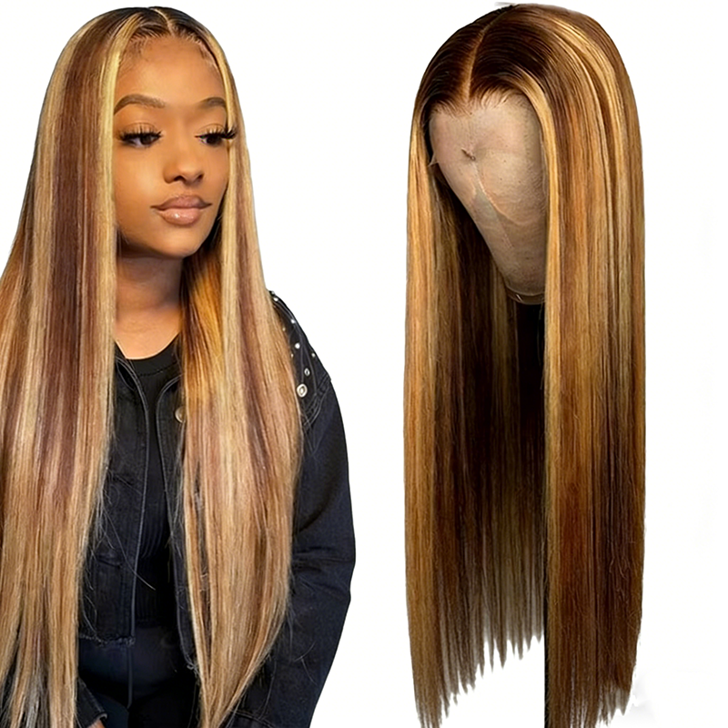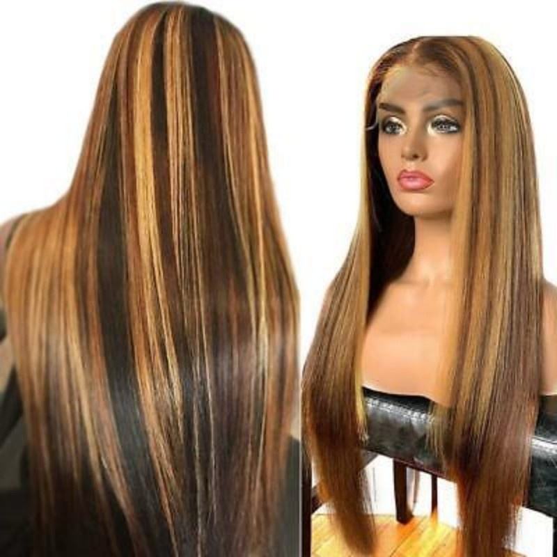 Perruque en cheveux humains vierges Remy 12A, densité 200%, pré-épilée, couleur Piano 4/27, ultra-lisse, 13*4, sans colle, longue, blonde, 1 pièce