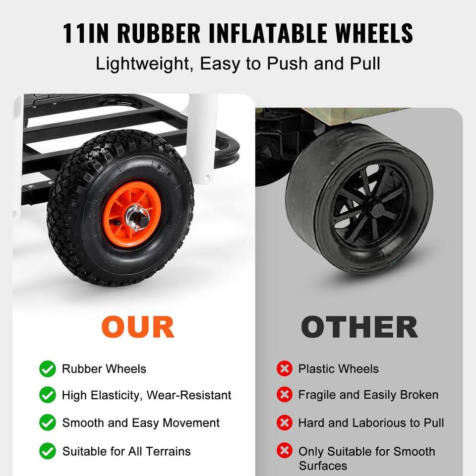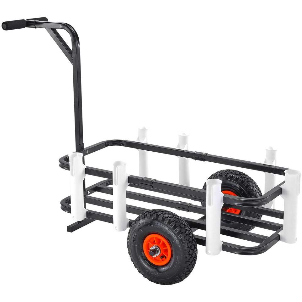 Chariot de pêche de plage avec capacité de charge de 200 lb, grandes roues de 11 pouces, pneus en caoutchouc à bulles, porte-cannes robustes pour la pêche en mer