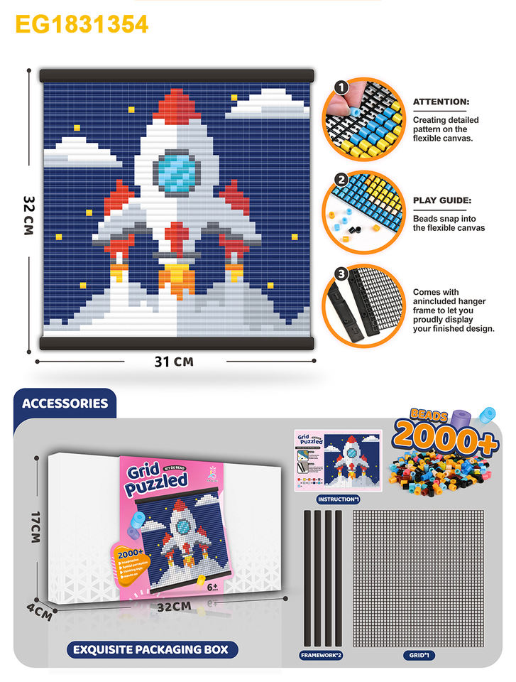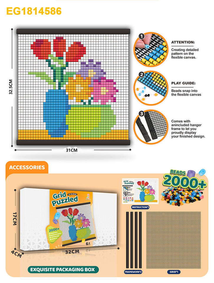Plus de 2000 perles créatives pour puzzles en grille, perles à fusionner sans repassage, kit de loisirs créatifs en toile, jouet éducatif DIY pour enfants, développement de la motricité fine