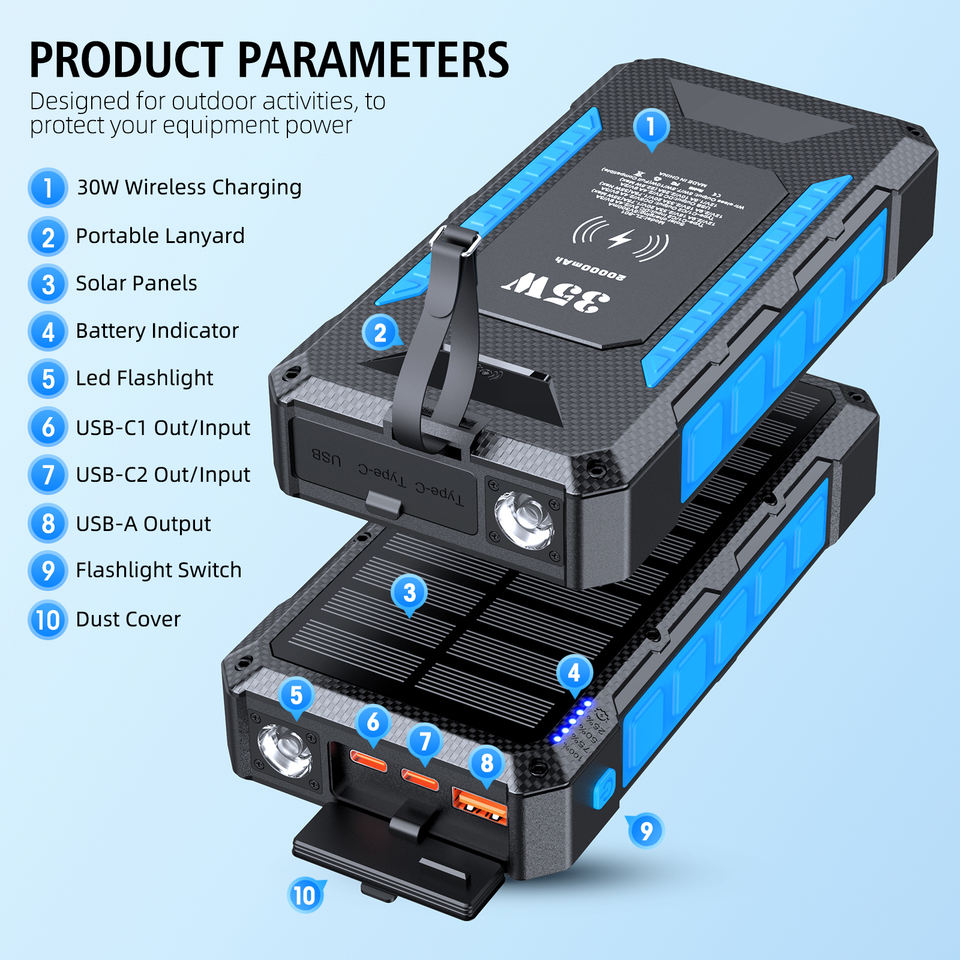 Banque d'alimentation solaire portable multifonctionnelle à charge rapide 20000mAh avec charge sans fil